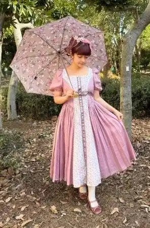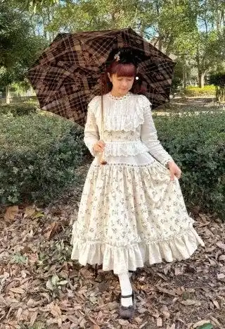 〇青木美沙子のコメント クラシカルなブラウンの色合いで、クラシカルロリータとの相性バッチリです。チェックと花柄の組み合わせが上品です。 |