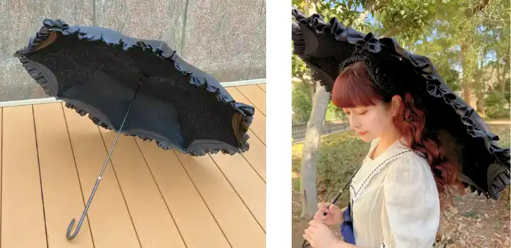 外側には存在感のあるクラシカルなフリル、内側にイタリアンレースを丁寧に縫い合わせた特別なパラソル。 肌心地の優しい上質なレザーハンドルを、華奢なデザインに仕上げました。 |