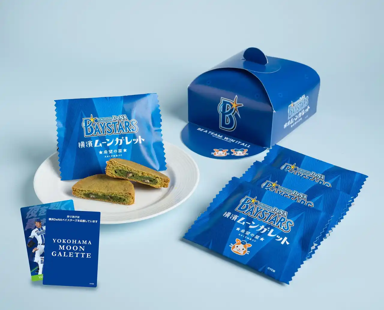 ・商 品 名:『横浜DeNAベイスターズムーンガレット☆たまくす抹茶ラテ』 商品価格:4個994円(税込) |