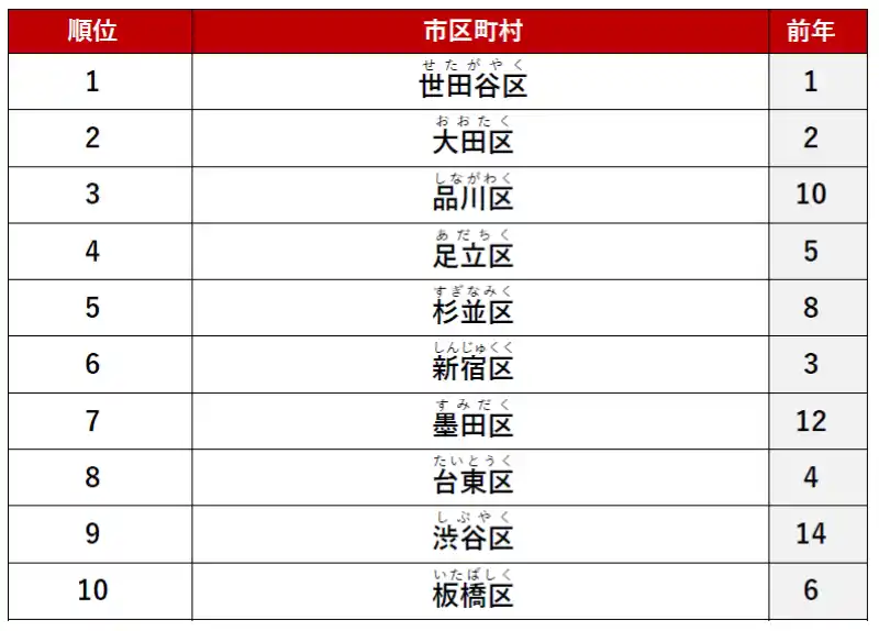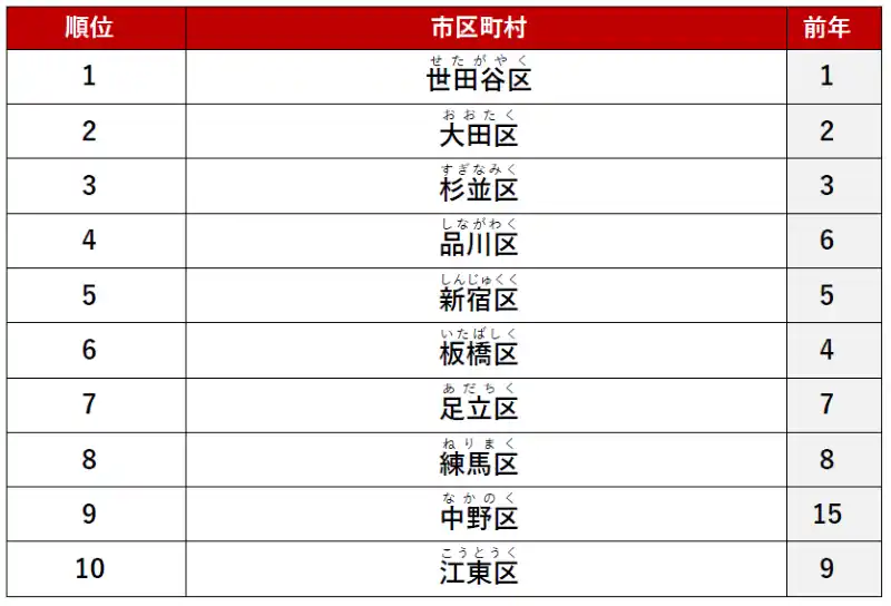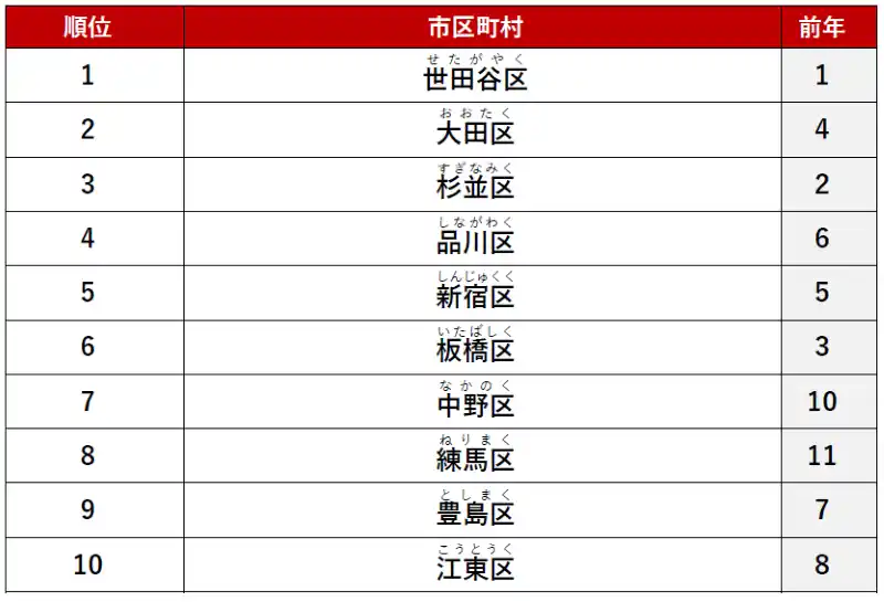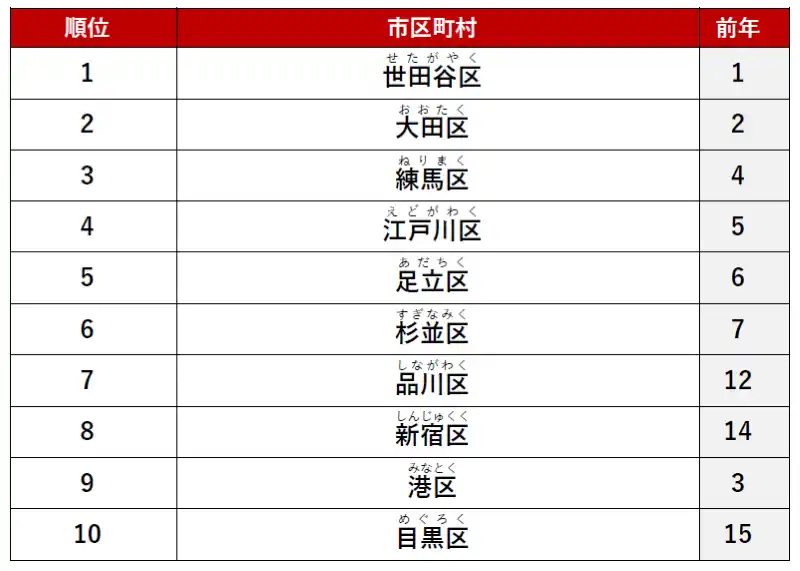 2位に「大田区」、3位に「杉並区」がランクインしました。 |
