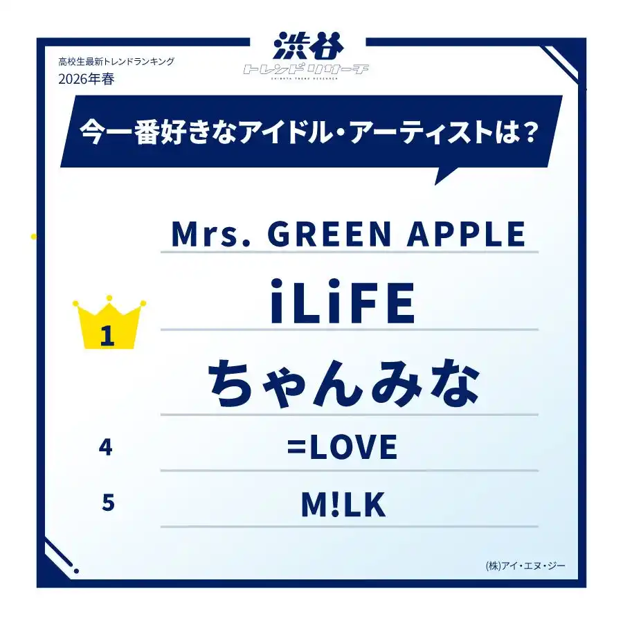 【ジャンルの異なる3アーティストが同率1位を獲得!】 今回は、不動の人気を誇る「Mrs. GREEN APPLE」に加え、熱狂的な支持を広げるアイドルグループ「iLiFE!」、そしてプロデューサーとしても手腕を発揮する「ちゃんみな」の3組が同率1位に輝きました。「Mrs. GREEN