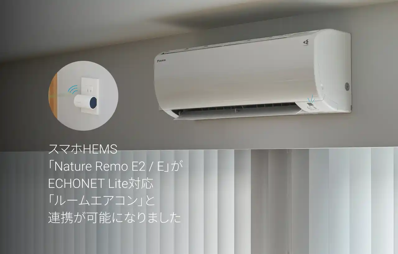 「自然との共生をドライブする」をミッションに掲げるNature株式会社(所在地:神奈川県横浜市、代表取締役:塩出 晴海、以下「Nature」)は、2026年3月18日(水)、スマホHEMS「Nature Remo E2」と「Nature Remo E」(以下「Nature Remo E2 / E」)をアップデートし、ECHONET Lite対応の家庭用エアコン(ルームエアコン)を対応機器として追加しました。これにより、スマートフォンアプリ「Nature Home」からエアコンの操作や、運転状況および電力消費量のモニタリングが可能になります。