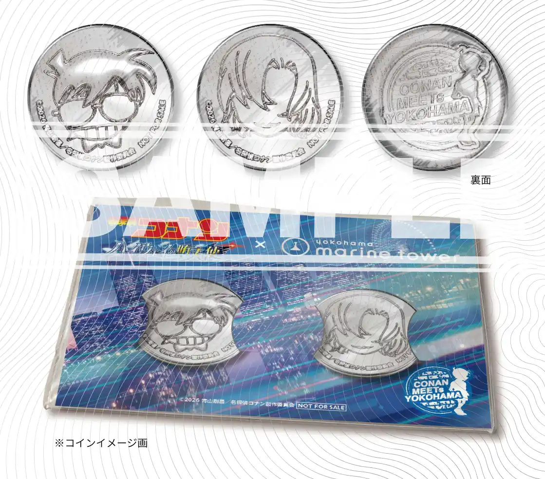 劇場版『名探偵コナン ハイウェイの堕天使』の舞台となる横浜・みなとみらいを一望できる横浜マリンタワーでマリンタワーでしか手に入らないノベルティ(刻印入りの記念コイン)が付いた展望フロアチケットを数量限定で販売いたします! |