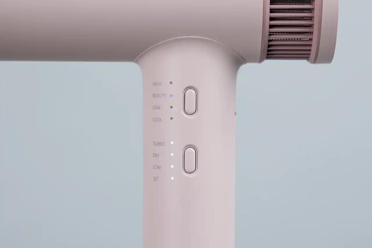 また、温度と風を自動で切り替えるBEAUTYモードを搭載し、髪をいたわりながらツヤのある仕上がりへ導きます。さらに、空間になじむ佇まいにもこだわり、どこにでもかけられる合皮素材ループをつけるなど、出しっぱなしでも生活感が出にくいデザインに仕上げました。 |