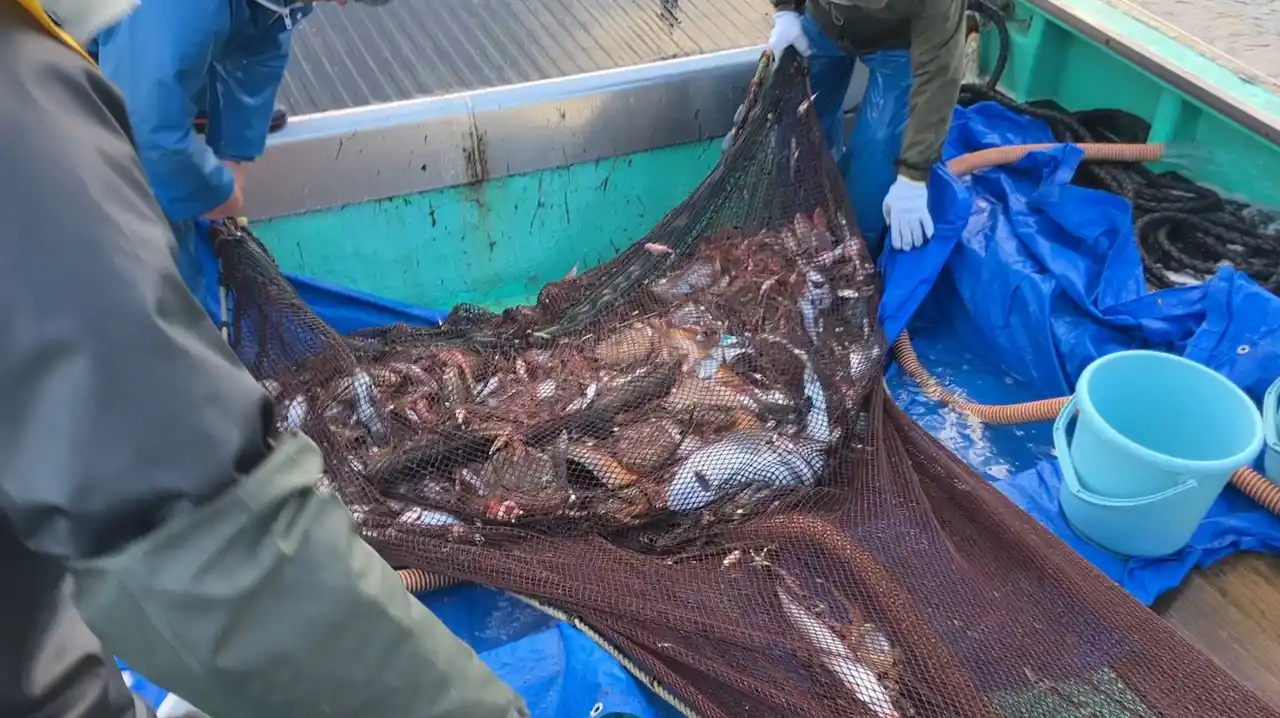 船で袋状の網をひいて海底付近に生息する生物を漁獲する漁法。サンシャイン水族館が同船させていただいている駿河湾では、アカザエビやメヒカリなどの深海生物を漁獲する底曳き網漁が盛んに行われています。 |