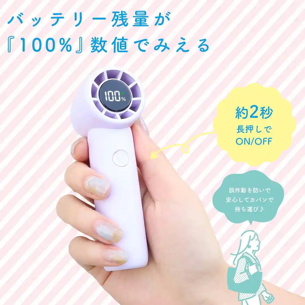 また、カバンの中での誤作動を防ぐ「2秒長押し電源ON/OFF」や、お子さまも安心して使える巻き込み防止など、細かな配慮も嬉しいポイントです。 |