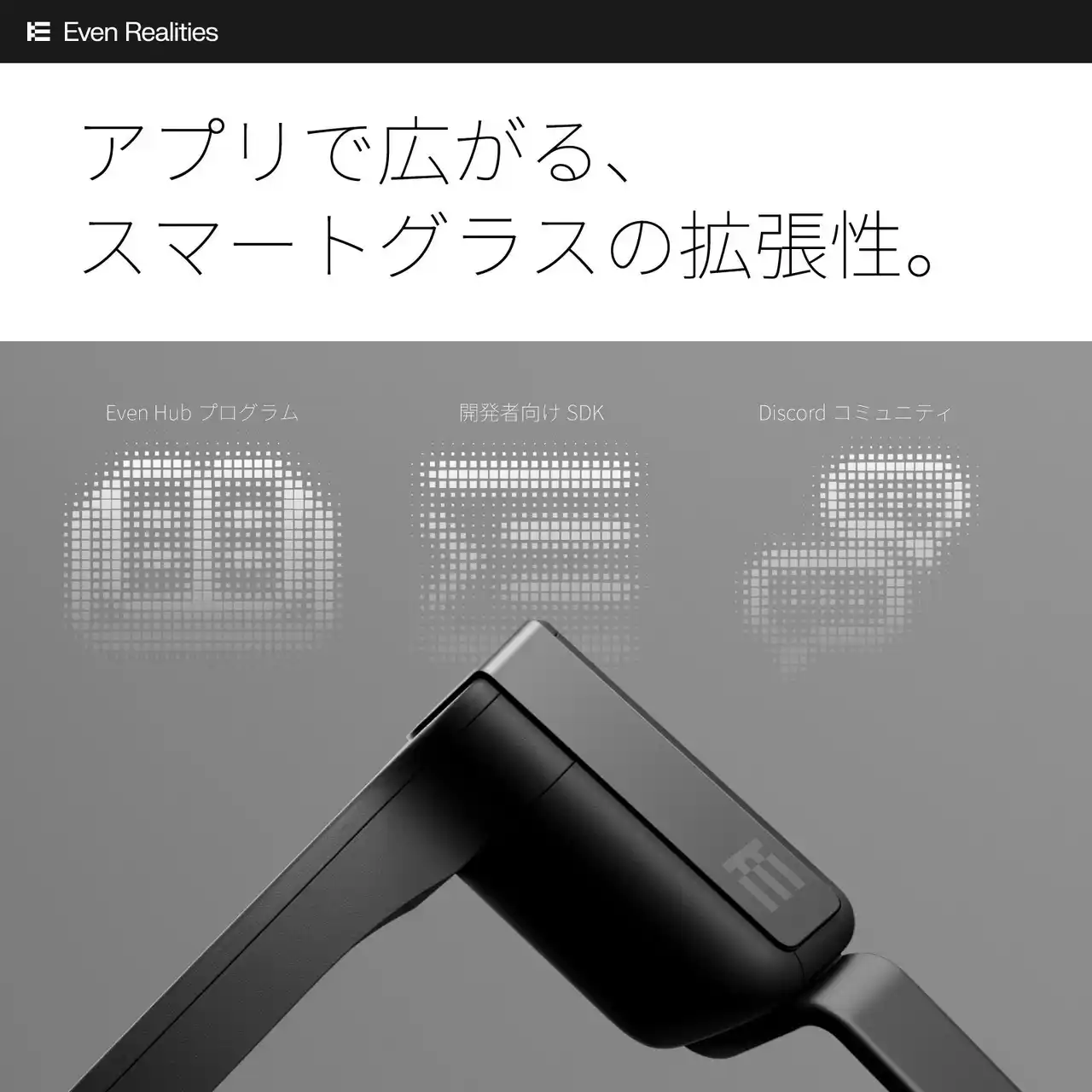 ▼ EvenRealities展開に関するお問い合わせ先 法人・販売店様サポート https://ali-jp.com/customer/ 個人ユーザー様サポート https://ali-jp.com/support/ |