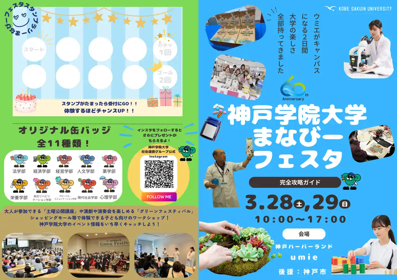 神戸学院大学の10学部が一堂に会し、専門性を生かしたワークショップや体験型講座を実施する「まなびーフェスタ」を3月28日・29日の2日間、神戸ハーバーランドumieにて開催します。 |