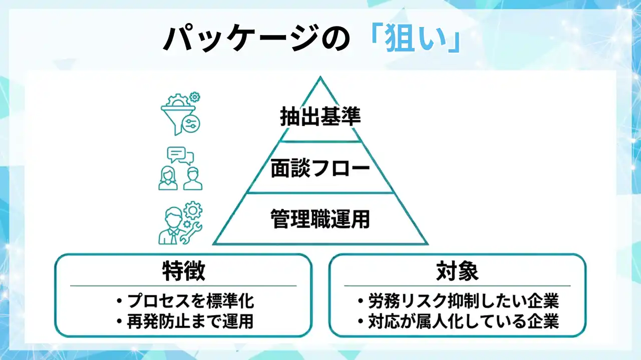 パッケージ概要(抽出基準/面談フロー/管理職運用/記録テンプレ) |