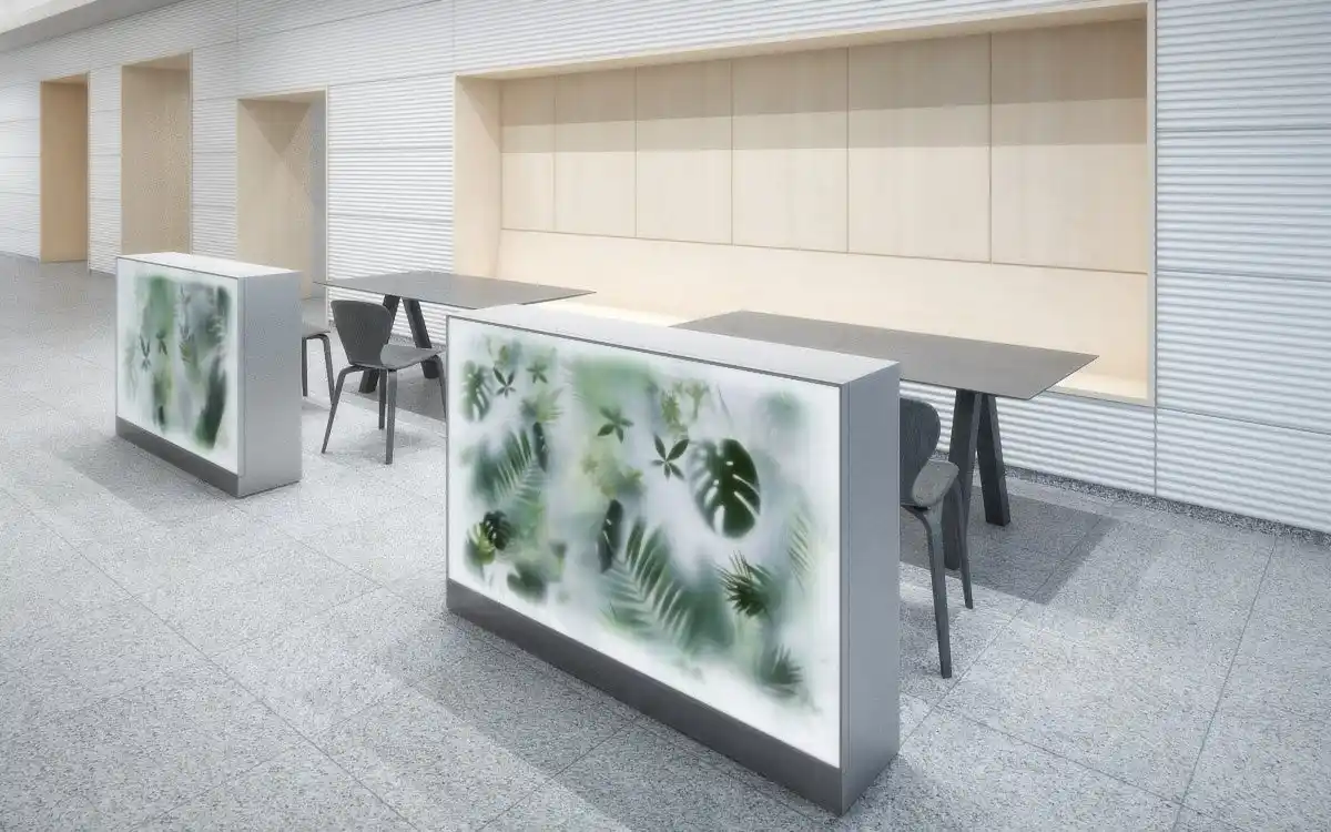 | 両面から使える独立型の家具スタイルやパーティション型で、空間を明るく緩やかに仕切りつつ、両面から光と緑の癒しの演出効果を楽しめます。リモコンで明るさや光と陰の動きをコントロールできます。 | |||||||||