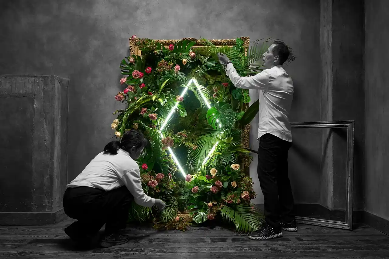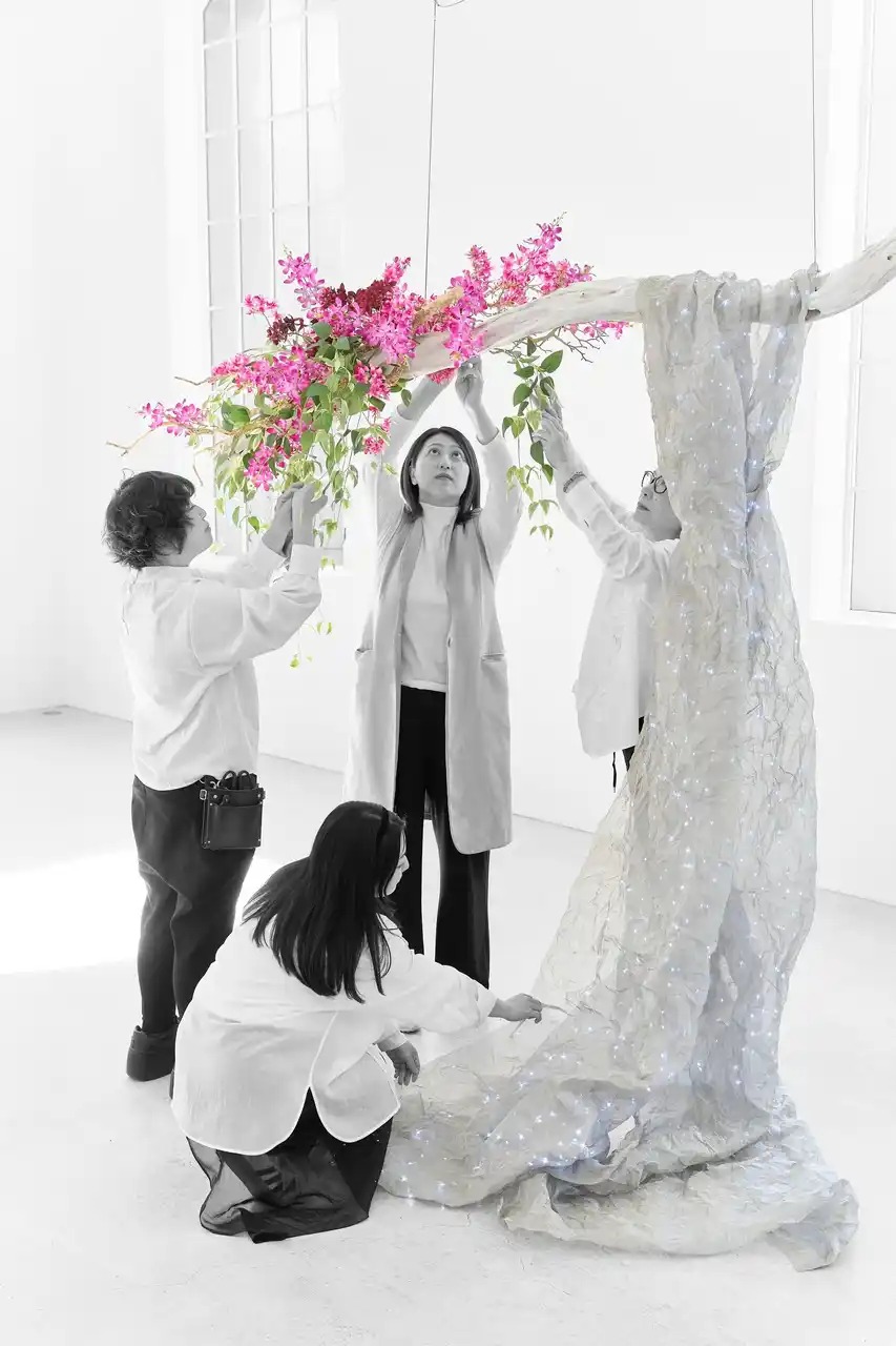 | 植物が持つ生命美と、アーティスト独自の自由な感性を掛け合わせることで、従来の装飾の枠を超え、空間そのものを一つの芸術作品のように彩ります。現代アートだけでなく、日本の伝統文化や地域に根付く工芸も融合させます。 | |||||||||