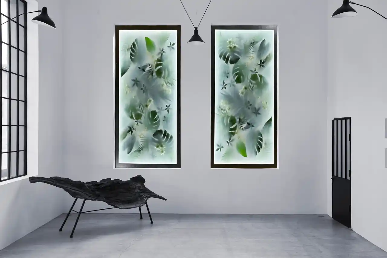| 「BIOPHILIART」の第一弾として、コンセプター株式会社の「HEALING GREEN ART SYSTEM」を基盤に、アーティストの尾坂昇治氏と日比谷花壇のセミオーダープロダクト「YUGEN(幽玄)」を展開します。 | |||||||||