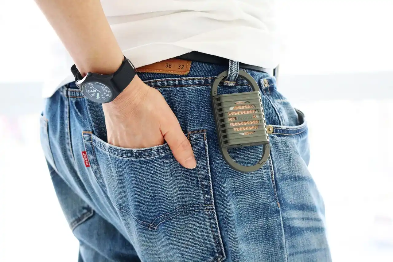 “カラビナデザイン”が、様々な蚊取りシーンにスタイリッシュに“カチッ”とマッチします。バッグ・ベビーカー・アウターなど、様々なアイテムに装着可能。 |