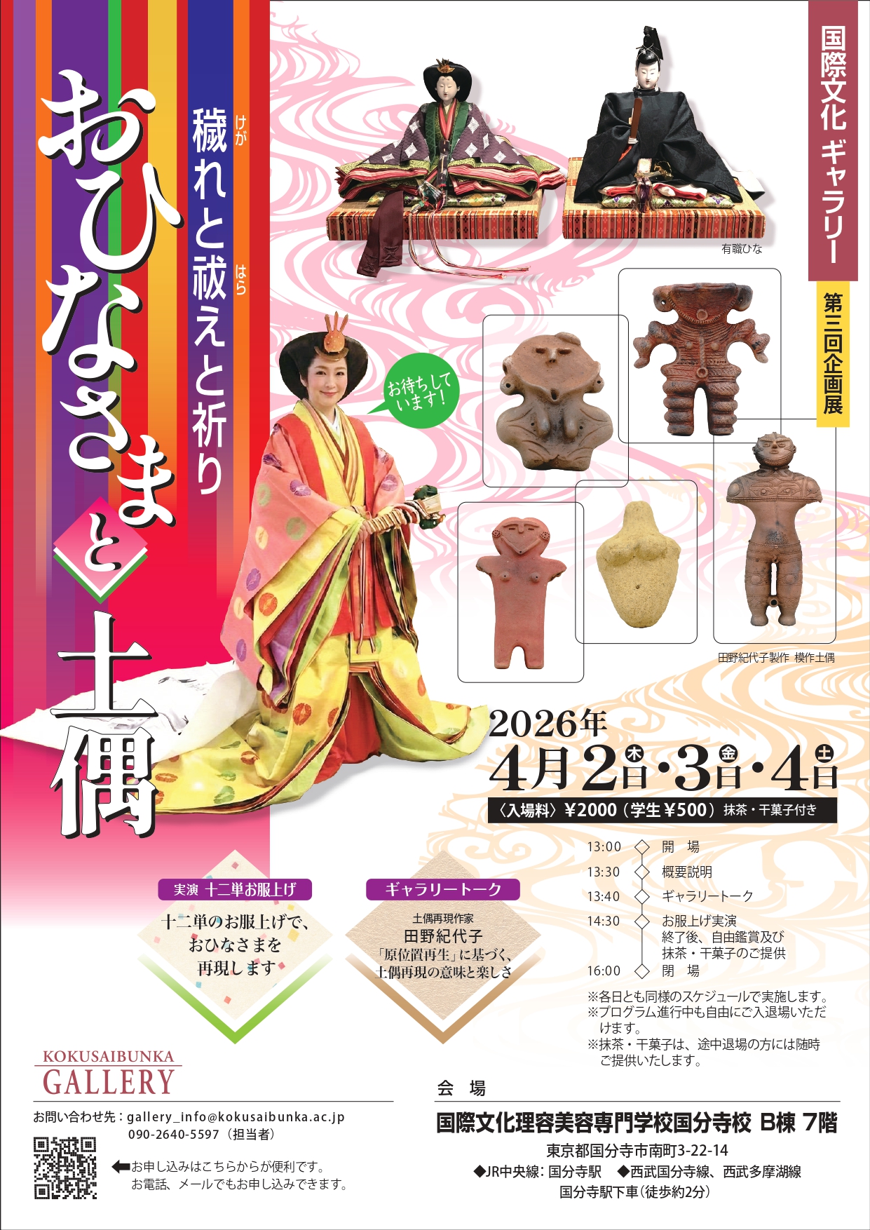 第3回目となる今回は、会場を国際文化理容美容専門学校国分寺校に移し、「おひなさまと土偶」をテーマに、ギャラリー&フォーラム形式で開催いたします。