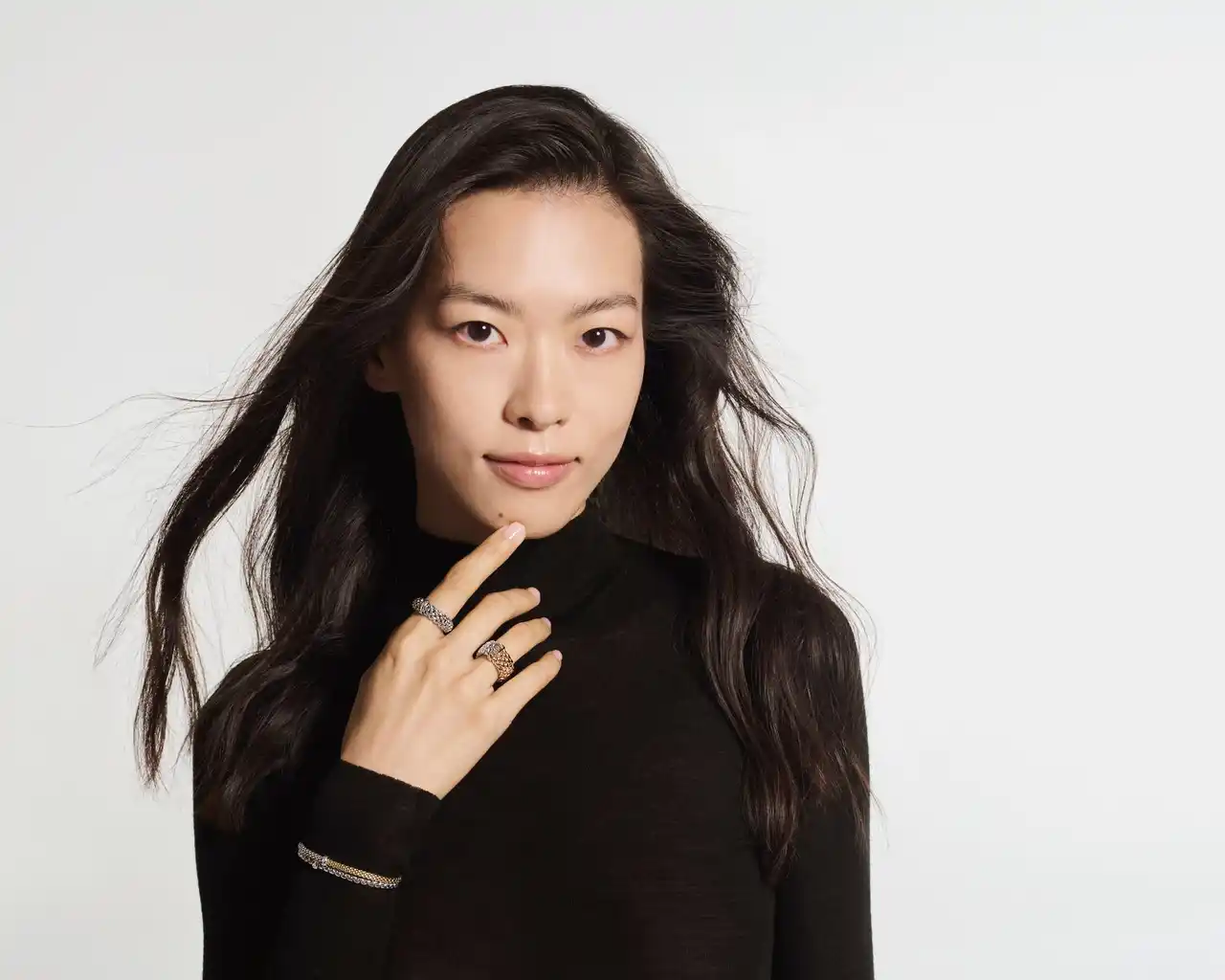 モデル着用:マストハブブレスレット各種495,000円~、エッセンシャルリング“パノラマ” 491,700円~※価格はサイズによって異なります |