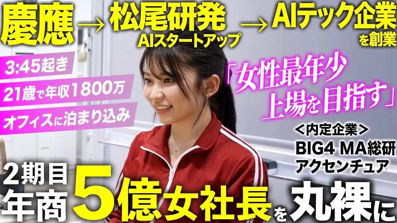 | 守田氏は慶應義塾大学在学中に松尾研究所発のAIスタートアップでの経験を経て、ITコンサルティング会社に入社。その後、株式会社Real Moiを創業し、現在は商号変更した株式会社Tech Labの代表取締役として、1期目売上1億円から2期目5億円への500%成長を実現しています。「女性最年少上場」という前例のない挑戦を掲げる守田氏の決断の軸、経営に対する考え方、そして日々のリアルな姿を映像に収めています。 | |||