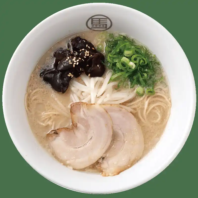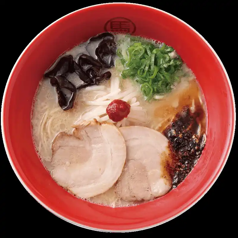豚頭のみを一昼夜かけて煮出した、さらりとしたシルキーな本格豚骨スープを使用。上品さの中に、旨みのパンチが効いた「これぞ我馬」の味わい。濃厚な旨みと深いコクがありながら、後味はすっきり。絶妙なバランスで支持され続ける定番です。 |