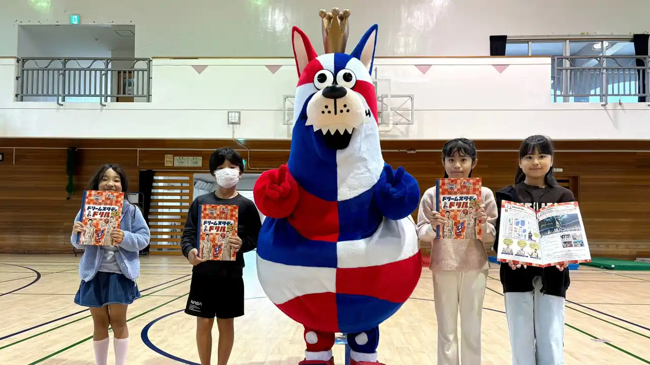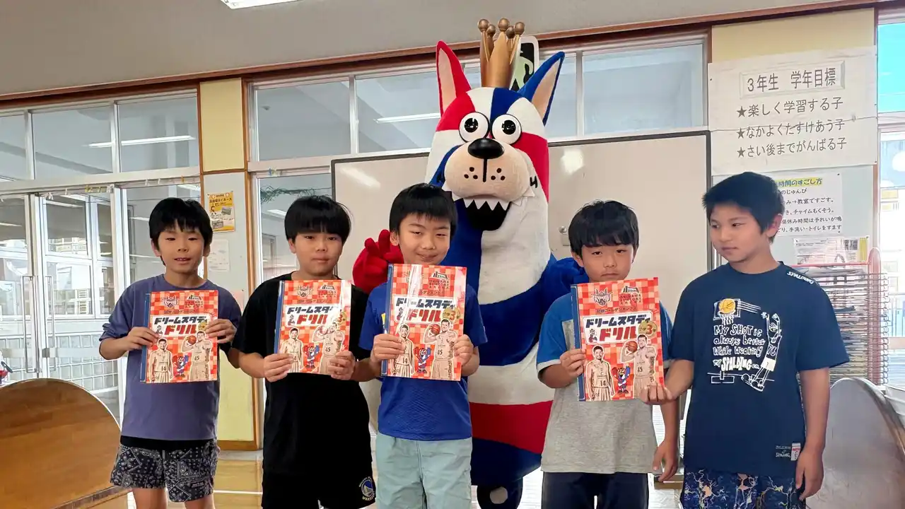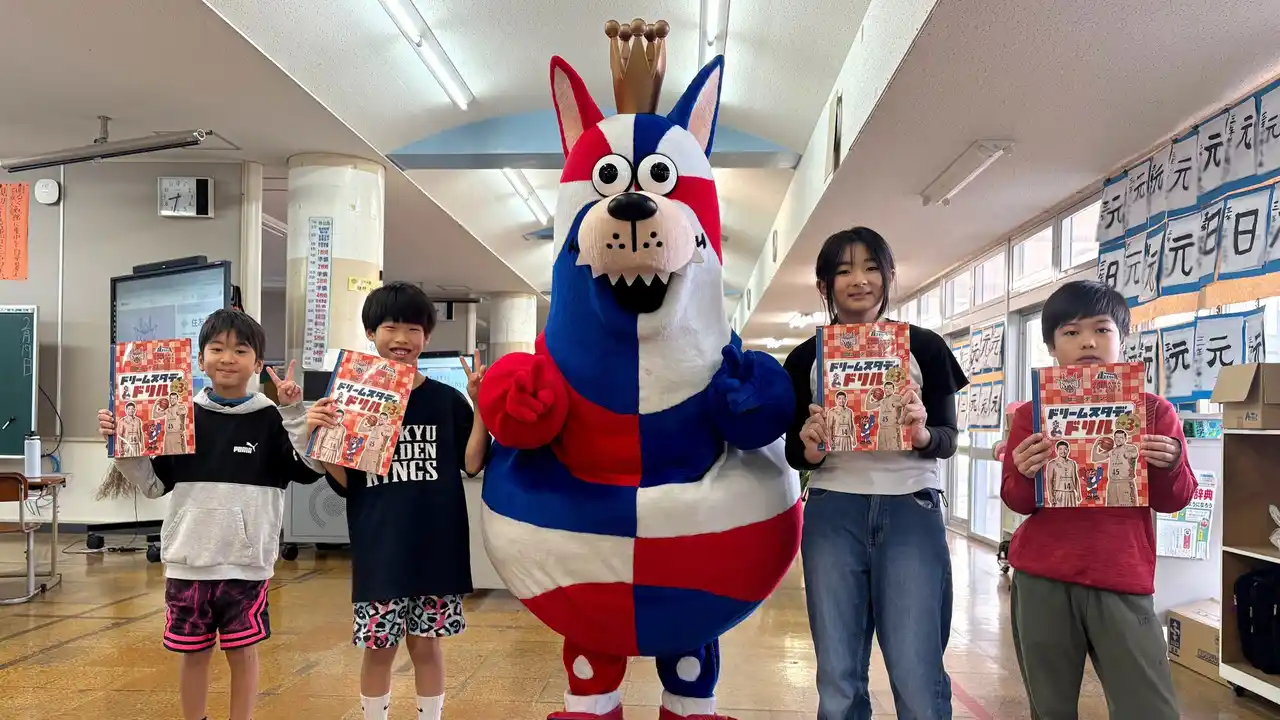 この度、琉球ゴールデンキングスとグループ会社である沖縄アリーナ株式会社が制作した「ドリームスタディドリル」を、ホームタウンである沖縄市内全小学校16校へ寄贈し、マスコットのゴーディーが各校を訪問して配布を行いました。ご協力いただいた各校の皆さま、ありがとうございました。 |
