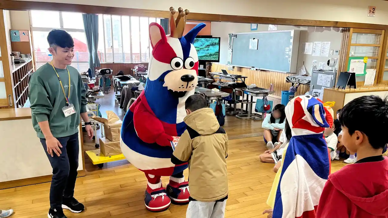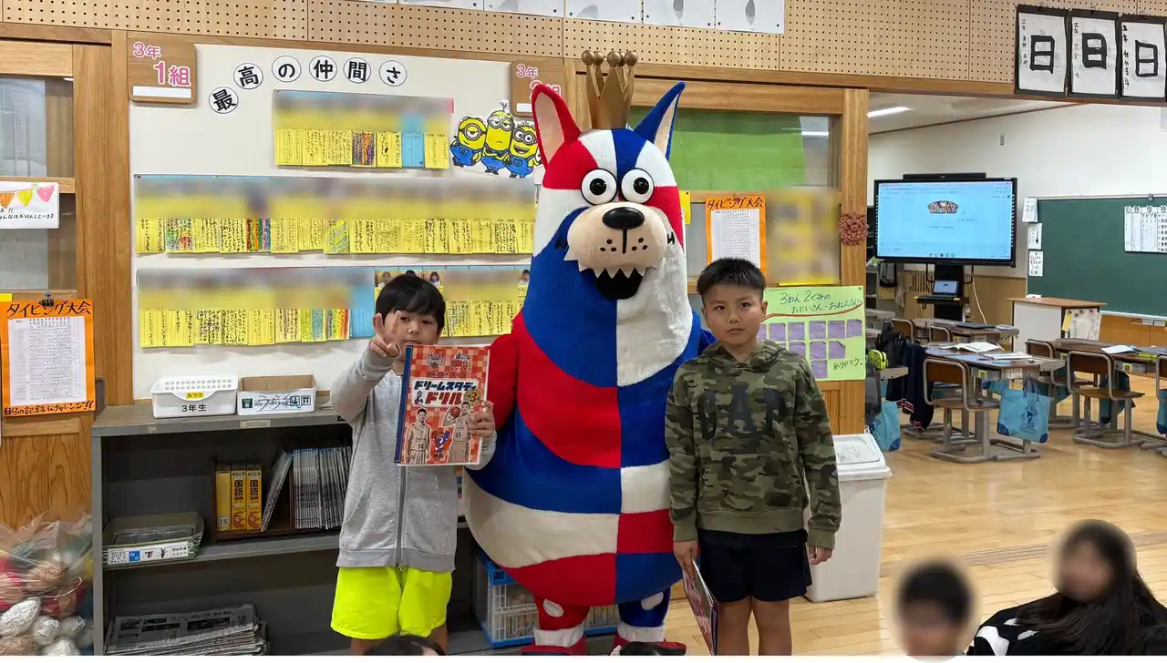 ゴーディーの訪問に驚く様子も見られましたが、ドリルや、付録の「岸本隆一選手のサイン入りポスター」や「ゴーディーのクラフト貯金箱」を嬉しそうに受け取っていました。また、子どもたちからは、「このドリルを使って、勉強頑張ります。」「沖縄市の子どもたちのために準備してくれてありがとうございます。」といった声も寄せられました。教職員からも「しばらくはこの話題で学校が盛り上がりそうです。」「春休みの良い宿題になります。」といったお言葉をいただき、子どもたちだけでなく、教職員の皆さまにも喜んでいただく機会となりました。 |