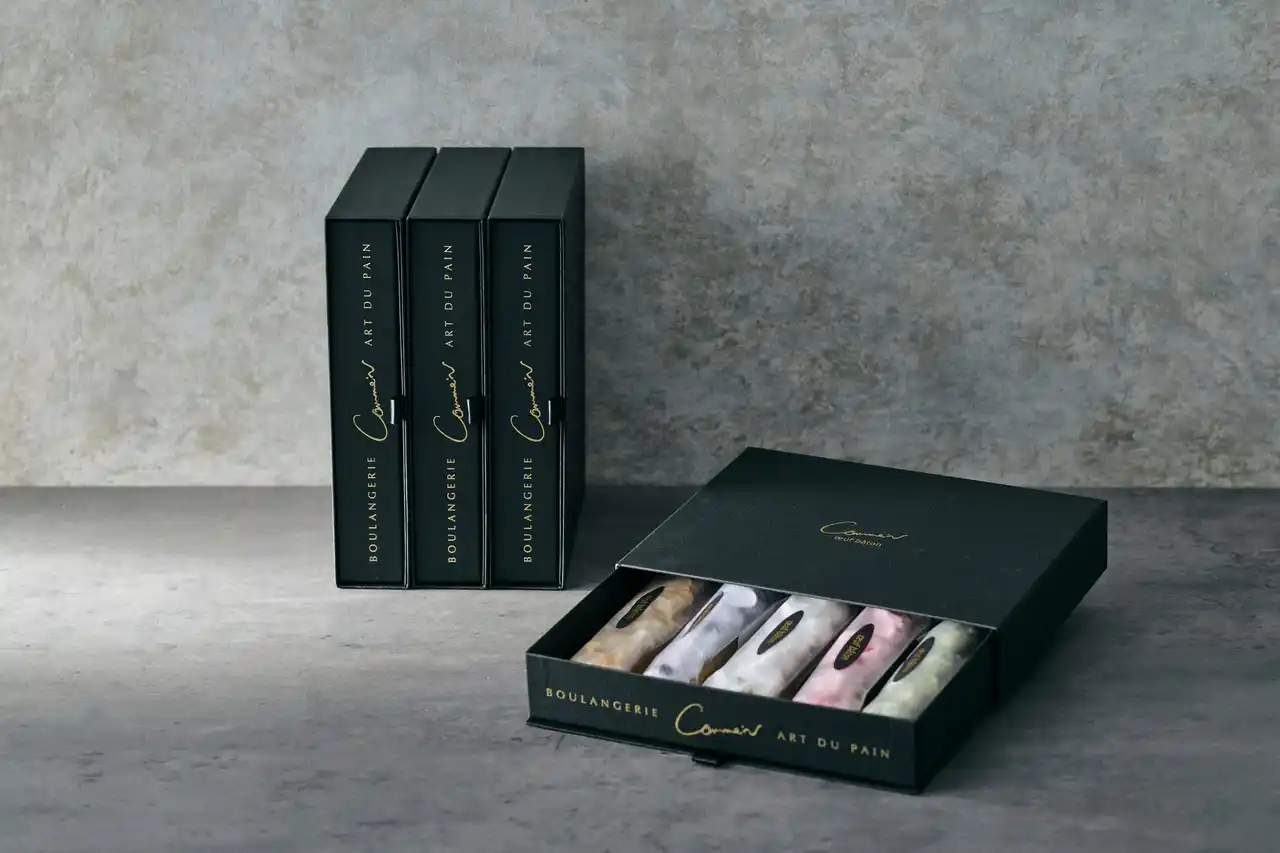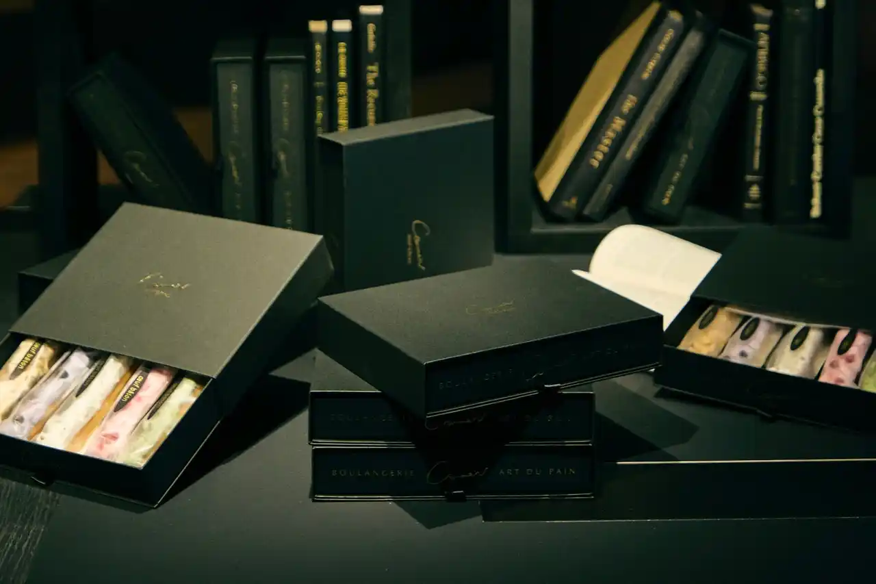 パッケージは、黒を基調としたボックスに金色の箔押しを施した、上質感のあるデザインを採用。食べ終えた後も手元に残して飾りたくなるような“本”をイメージした特別なボックスに仕上げています。 |
