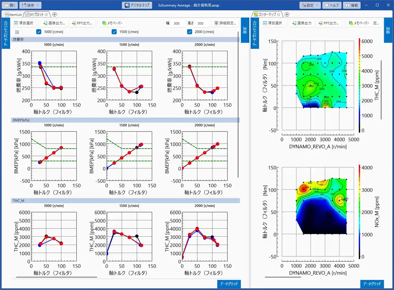 測定データをインポートすることで、XYプロット、コンターマップ、デジタルマップを描画できます。 |