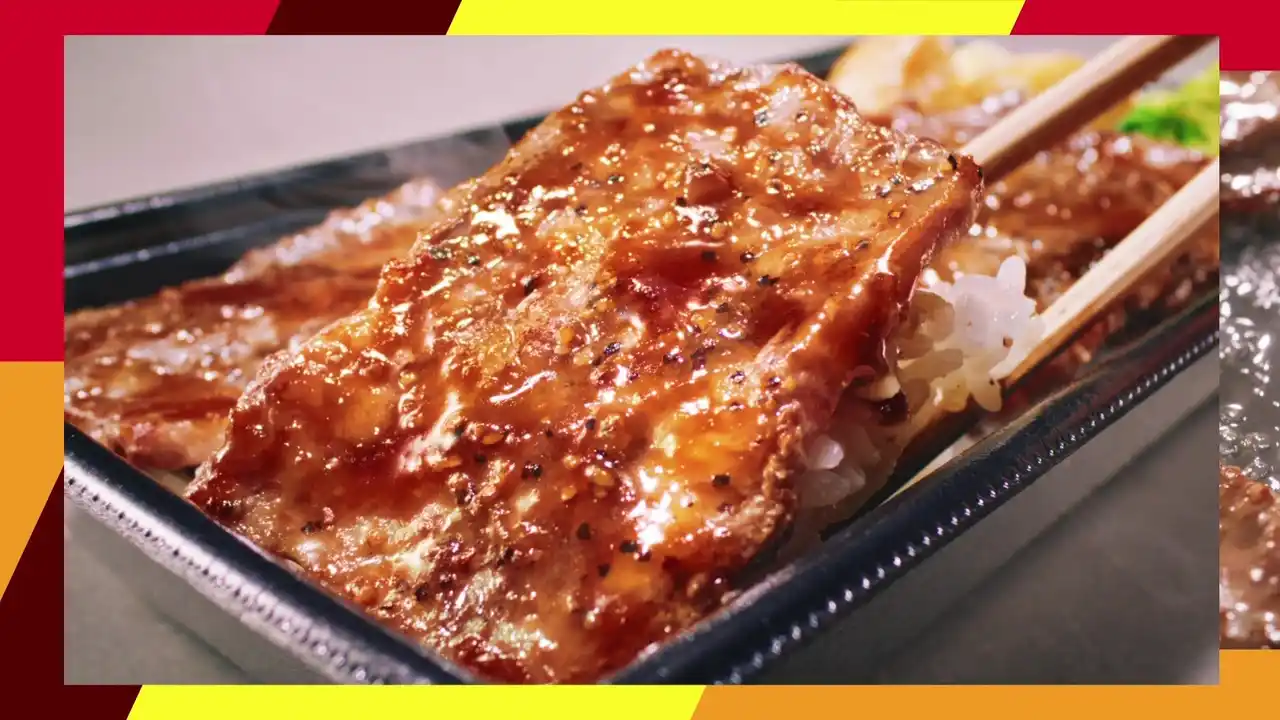 『新・ビーフカットステーキ重』の美味しさポイントである、柔らかくジューシーなお肉を迫力のあるシズルで表現しています。躍動感のある焼きシズルや、絶品和風ソースがお肉とごはんにかかる場面などが見どころです。また、春の訪れを感じる『たけのこごはん』も登場します。 |