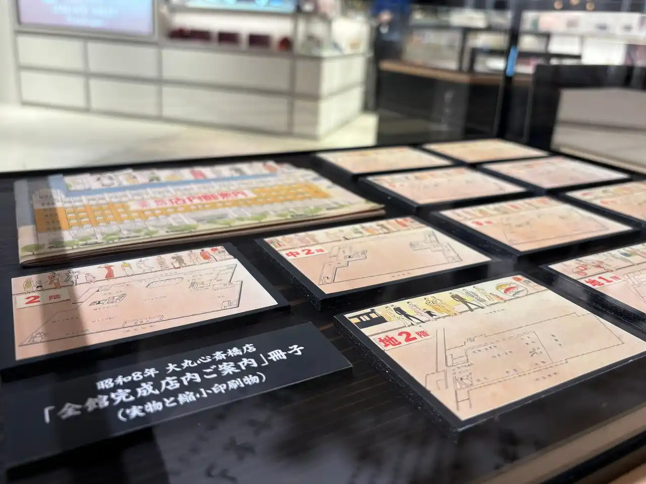 ■7階 東側「広告販促物の歴史」思わず手に取りたくなる、過去のフロアマップやイベント案内を展示しています。 |