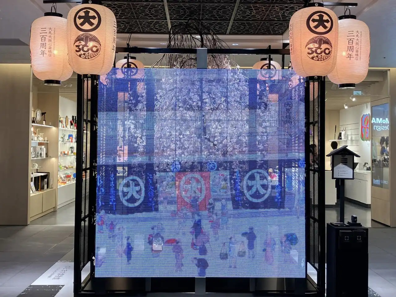 ★300周年ロゴをあしらった提灯と桜も展開中です。 |