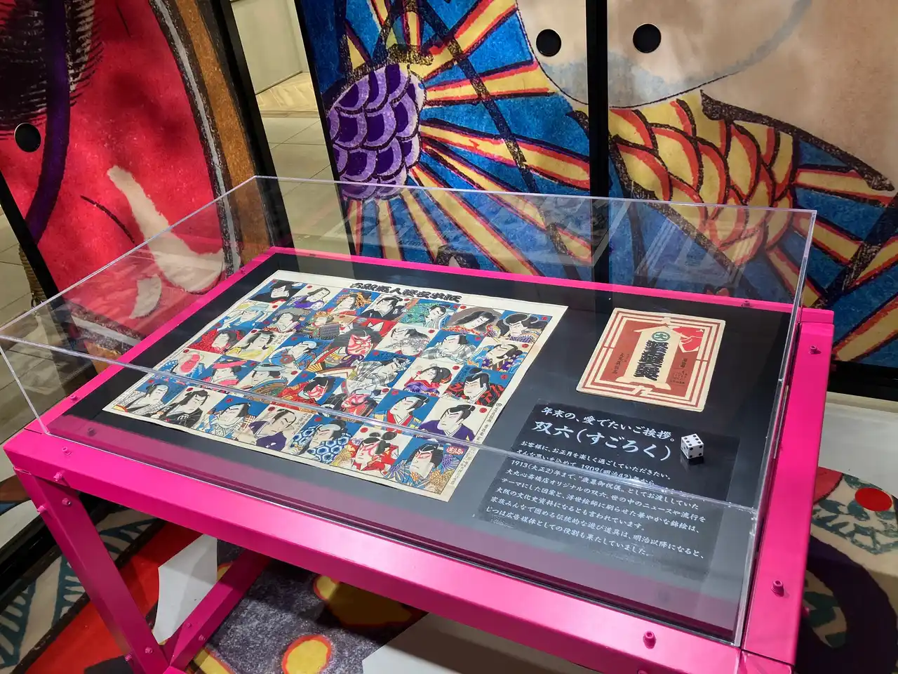 ■5階 東側/西側 「双六の実物展示」年末に歳暮御祝儀としてお渡ししていた双六。 |