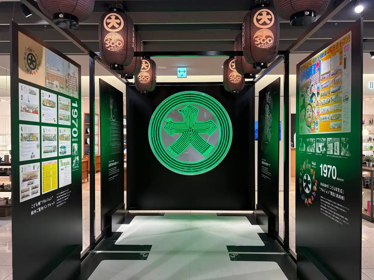 ■1階 心斎橋筋側南玄関「創業の地・歴史紹介」この地を離れることなく営業を続ける創業の地に、年表を掲示しています。 |