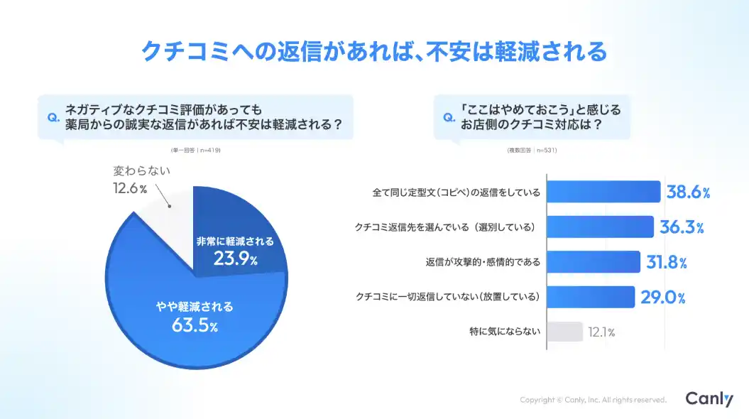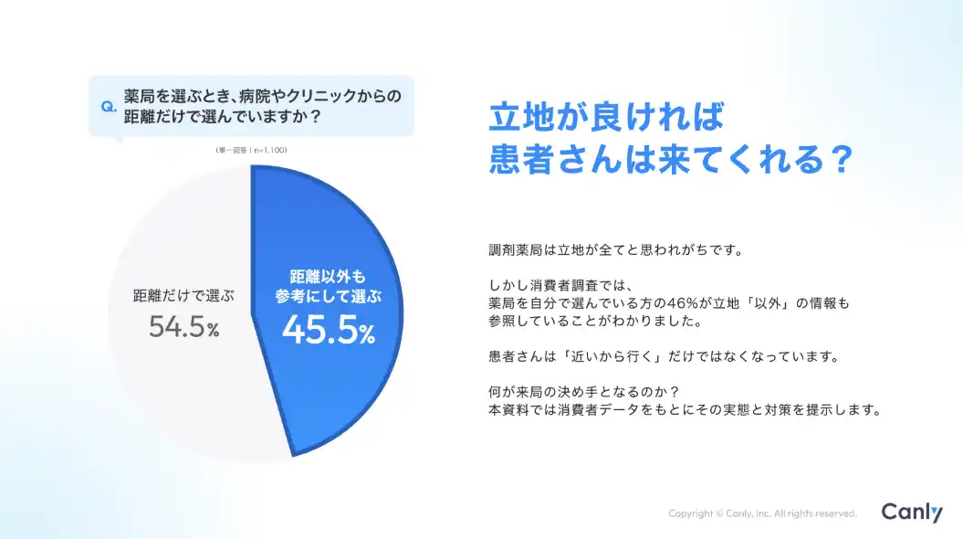 | Google ビジネスプロフィール(TM)︎・HP・各SNSの一括管理サービス「カンリー店舗集客」の開発・提供を行う株式会社カンリー(所在地:東京都品川区、代表取締役:辰巳 衛,秋山 祐太朗)は、調剤薬局業界向けに「患者さんは立地だけで薬局を選んでいなかった!クチコミ分析で読み解く、患者が薬局を選別するときの心理と対策」を無料公開しましたので、ご案内いたします。 | |||||||||||
