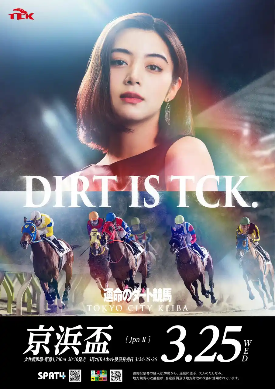 東京シティ競馬(TCK)は、大井競馬第19回開催(3/23~3/27)をトゥインクルレースとして開催します。1986年7月に日本初のナイター競馬として大井競馬場でスタートしたトゥインクルレースは、これまで多くのお客様にご来場いただき、本年、40周年を迎えます。今開催では3歳ダート三冠競走の初戦「羽田盃」への重要なステップレースとなる「京浜盃(JpnII)」を実施。TCK公式YouTubeライブ番組「ウマきゅん」では2025年度を締めくくるスペシャルなゲストをお迎えします。 |