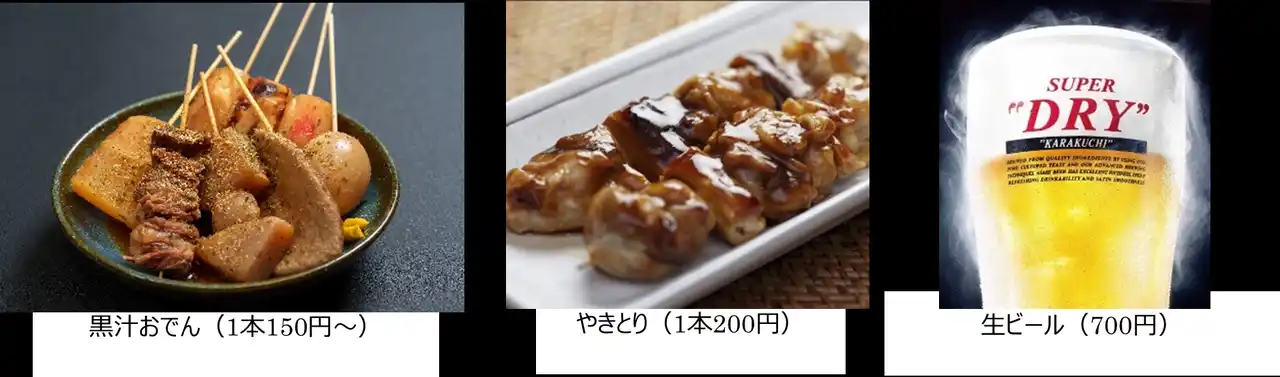 3月23日(月)L-WING2階に黒汁おでんとやきとりのお店がオープンします。厳選やきとりを香ばしく焼き上げ、こく旨ダレで。真っ黒だしの旨味がしみ込んだおでんには、風味豊かなだし粉を添えてご提供します。お得なほろ酔いセットもぜひお楽しみください。また、オープンを記念して、やきとりまたは黒汁おでんを500円以上お買い上げいただいた方を対象に、生ビールを1杯300円でご提供いたします。 |