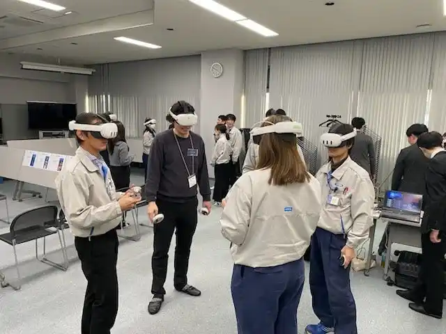 当日はリーダー層を中心に、当日出勤者の半数を超える社員が参加しました。複数人での同時体験型VRや実機不要の安全教育といった実務に即したプログラムを通じ、チーム連携の強化や現場での判断力向上といった具体的な活用方法を多角的に検証しました。 |