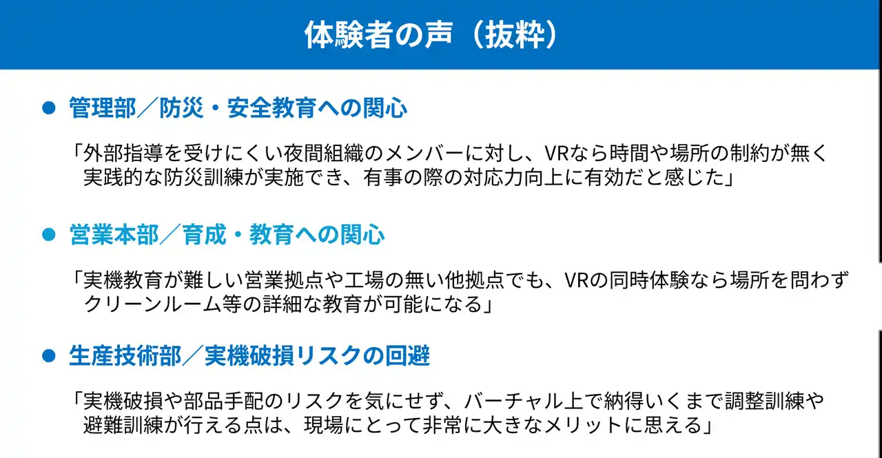 実施後のアンケートでは、参加した社員から先端技術の導入に対して前向きな期待が寄せられました。 |