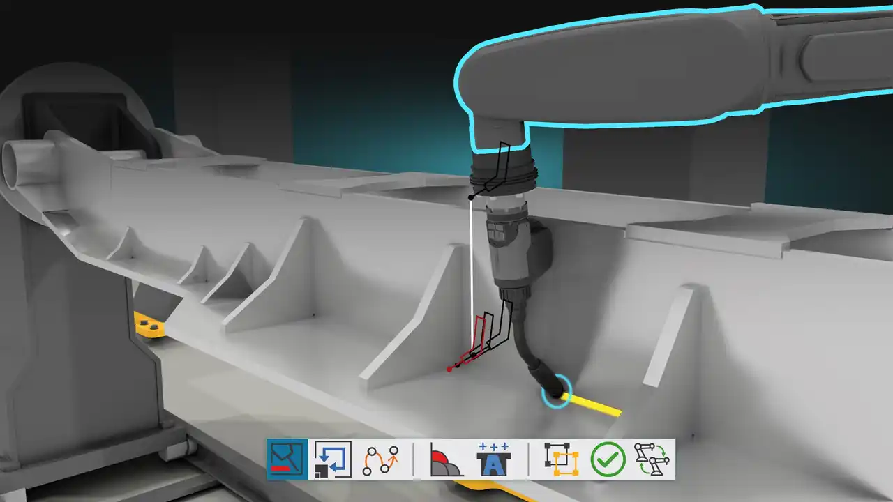 複雑な環境での安全なロボット経路生成 新たに搭載された自動パスソルバーにより、衝突回避、関節制限、到達性を考慮した安全な動作経路を自動生成します。狭い作業空間や複雑な設備条件でも、動作パス調整の効率化を支援します。 |