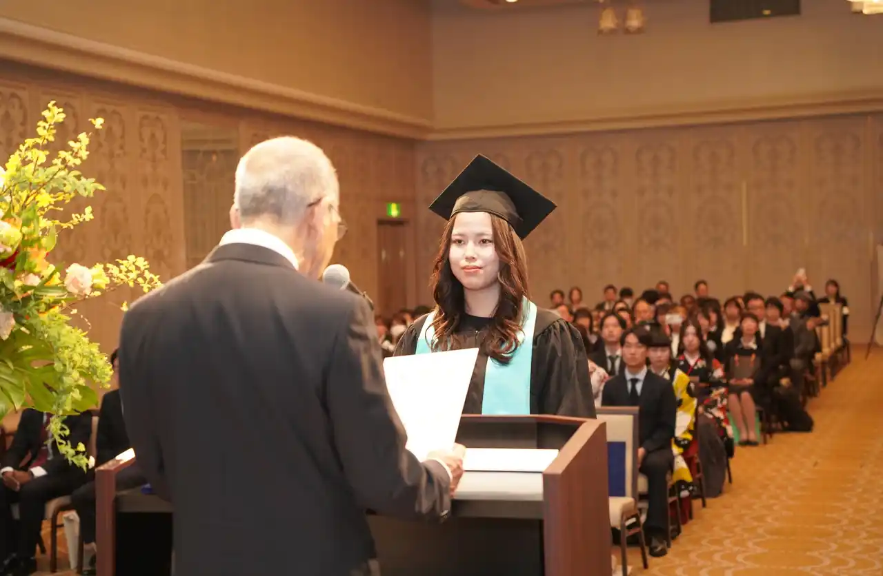 | 卒業生代表:山崎祥子さん(学位記授与の代表登壇、卒業生代表スピーチ) | |||||||||