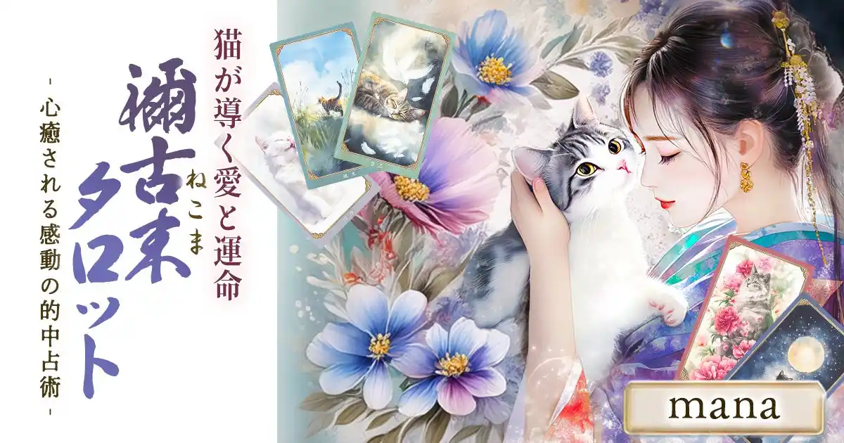 「禰古末(ねこま)タロット」は、古来より霊性を宿す存在とされてきた“猫”と、象徴と叡智に満ちたタロットの世界観を融合させた、mana氏が手がけるオリジナルタロットです。「禰古末」とは猫の古い呼び名に由来し、カード一枚一枚には四季折々の日本古来の風物詩とともに、美しい猫たちの姿が描かれています。繊細な絵柄に込められたメッセージが、相談者やそのお相手を取り巻く状況や心理、未来の流れを丁寧に映し出します。猫たちの神秘性と象徴的なメッセージを通じて、恋愛や人生に悩む方に新たな気づきや前向きな一歩を考えるきっかけを提供します。豊富なメニューラインナップを取り揃えておりますので、その中からメニューをお選びいただき購入することで鑑定の結果を閲覧いただけます。 |