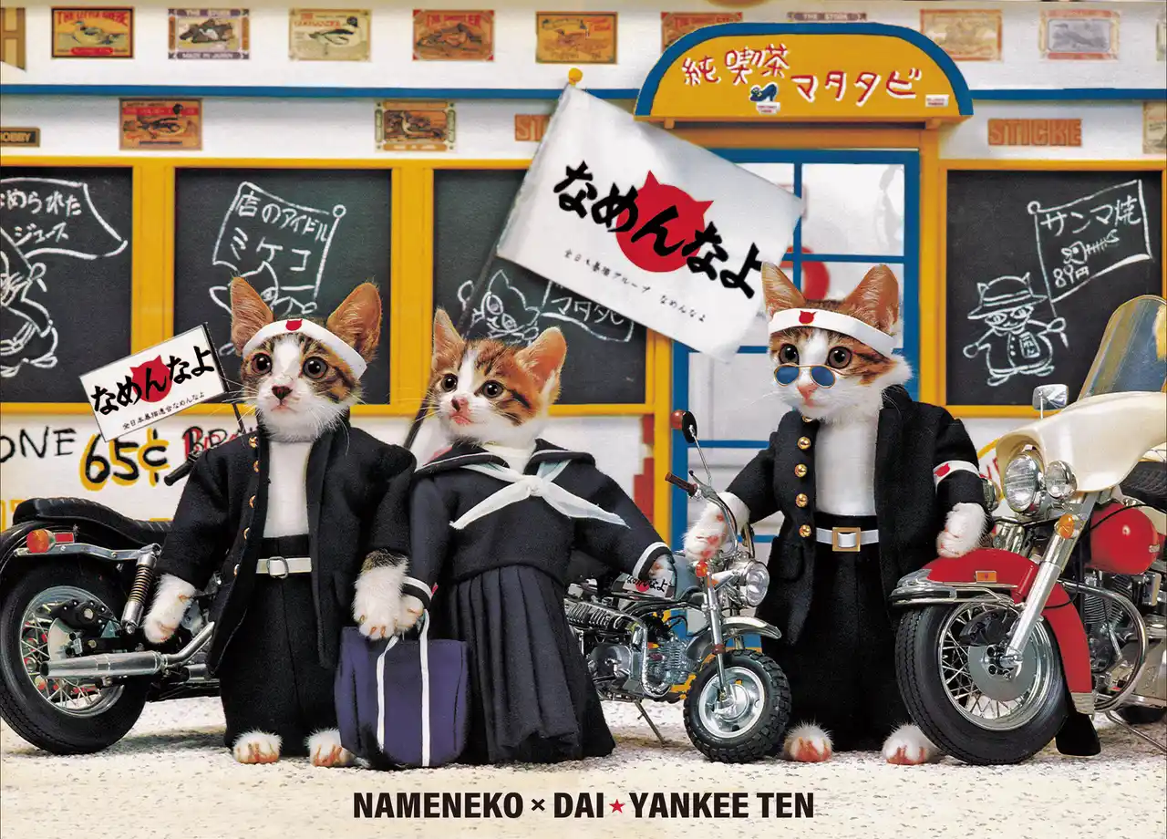 | さらに、1980年代に空前のブームを巻き起こした「なめ猫」ともコラボが実現。ヤンキー姿のなめ猫たちと横並びで没入感のある写真が撮影可能です。 | |||||||||||||||||||