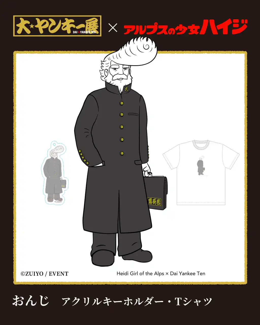 | また、公式コラボが実現した「アルプスの少女ハイジ」とは大ヤンキー展でしか体験できないフォトスポットも登場。ヤンキー姿になった「おんじ」や「ヨーゼフ」「ユキ」、対して不良撲滅を掲げ風紀委員長として立ち上がった「ハイジ」など有名キャラクターとまるで”一緒に”写真が撮れる唯一無二の体験となっております。 | |||||||||||||||||||