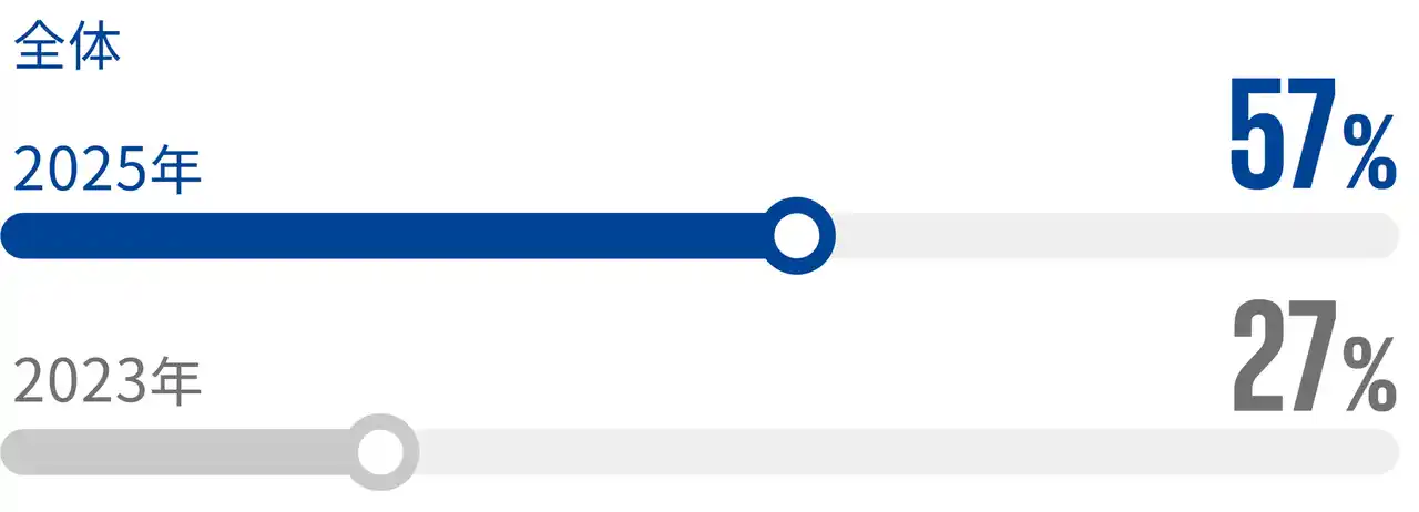 2.「AIに関するリスク管理が重点施策」と回答した企業は、前回の調査から2倍以上の57%へ急増。ガバナンスの実態をみるとルール、ガイドラインの制定は進んでいるものの、より成熟したレベルの施策は低水準にとどまっている。Trust(信頼・安全・ガバナンス)領域は企業の成長のエンジン基盤として再定義することが求められる。 |