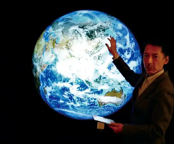 | 「触れる地球」Sphere は、そうした地球と人類の「自己認識のセンスウエア」づくりの第一歩であり、地球のいまを知り、感じるツールです。ゆくゆくは誰もがこうした「生きた地球」を心のなかに抱いているような時代―そんな人類のマインドの進化を目指しています。 20世紀、人類社会に大きな発展をもたらした技術文明は、「常 温常圧」で高効率のパフォーマンスを見せる地球生命系に比べてまだまだ未熟です。人類の技術文明はその「進歩」ゆえにでなく、その幼稚さゆえに地球環境にダメージを与えています。 | |||