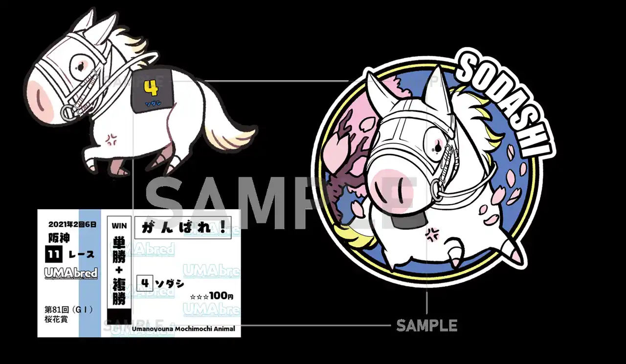 | さらに「メイケイエール」号の同期にして、世代を代表するアイドルホース「ソダシ」号のグッズが、5月開催予定のPOPUPに先んじて一部登場します。 | |||