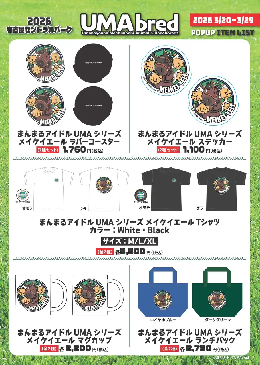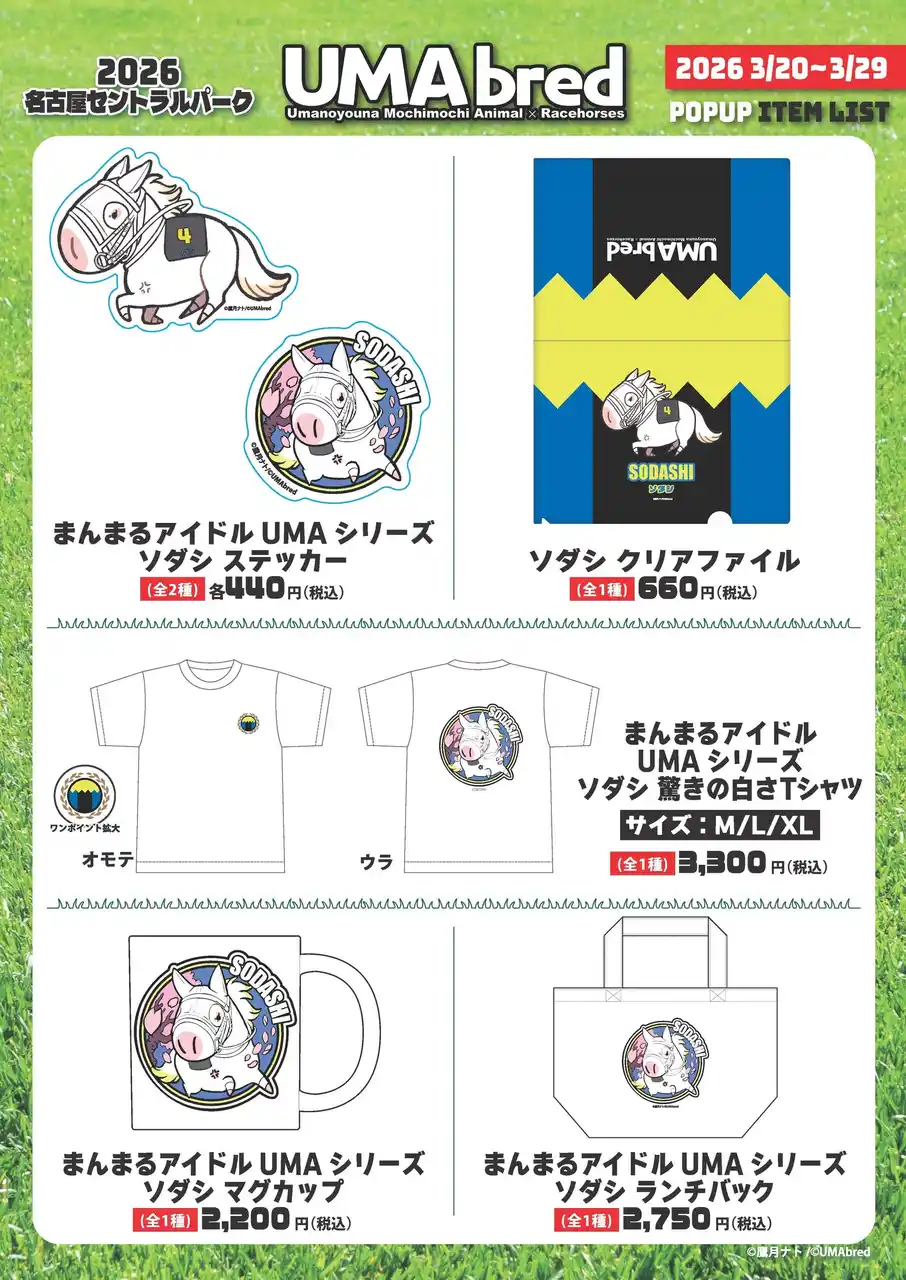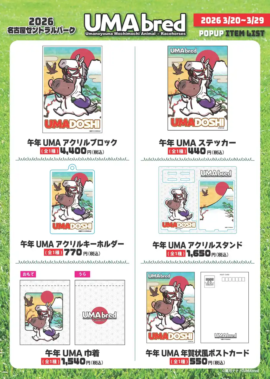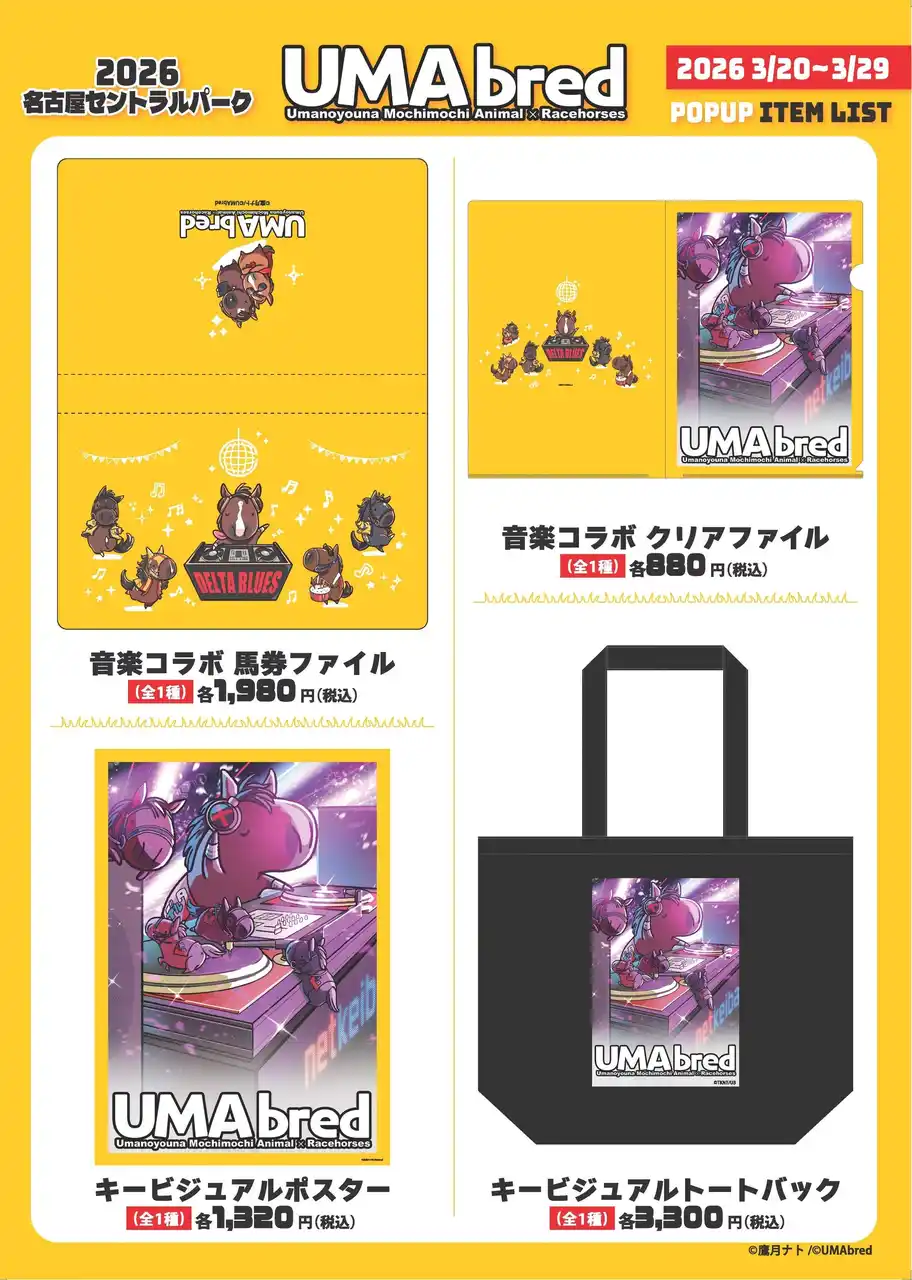| 実在の競走馬・引退馬を「UMA」(ウマのようなモチモチアニマル)として描きおろすグッズブランド「UMAbred」は3/20(金・祝)~3/29(日)の日程で名古屋セントラルパーク イベントスペースにてPOPUPを実施いたします。 | |||