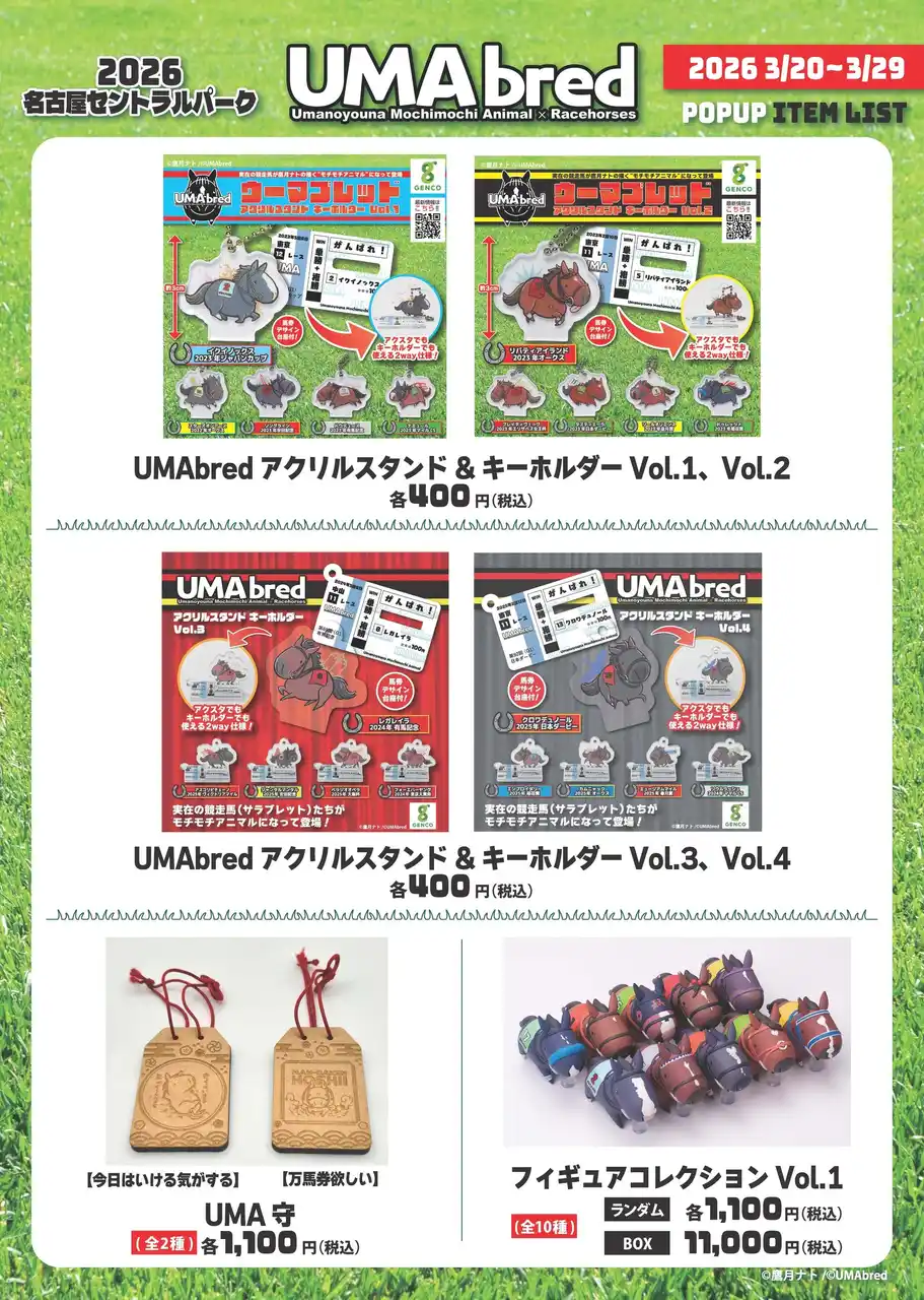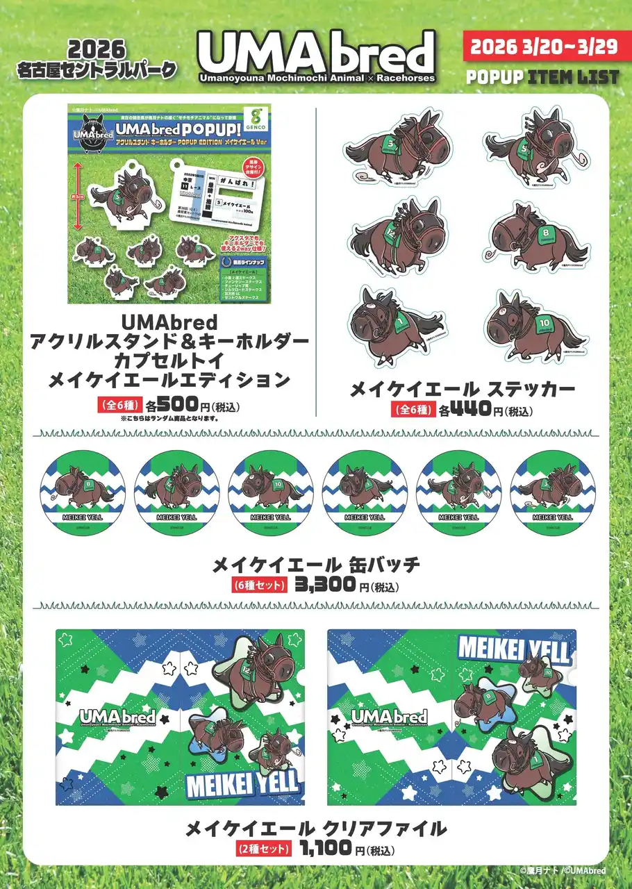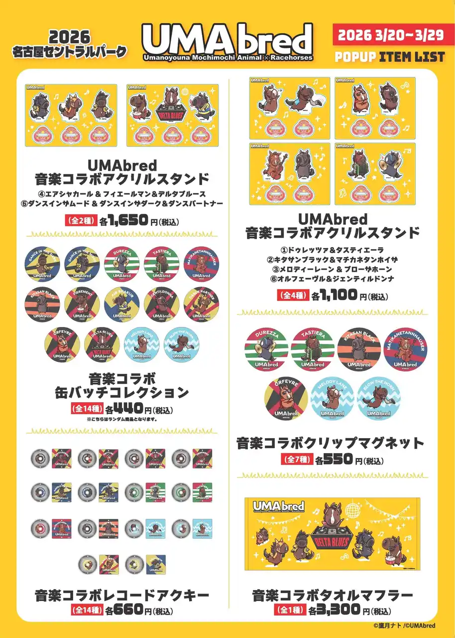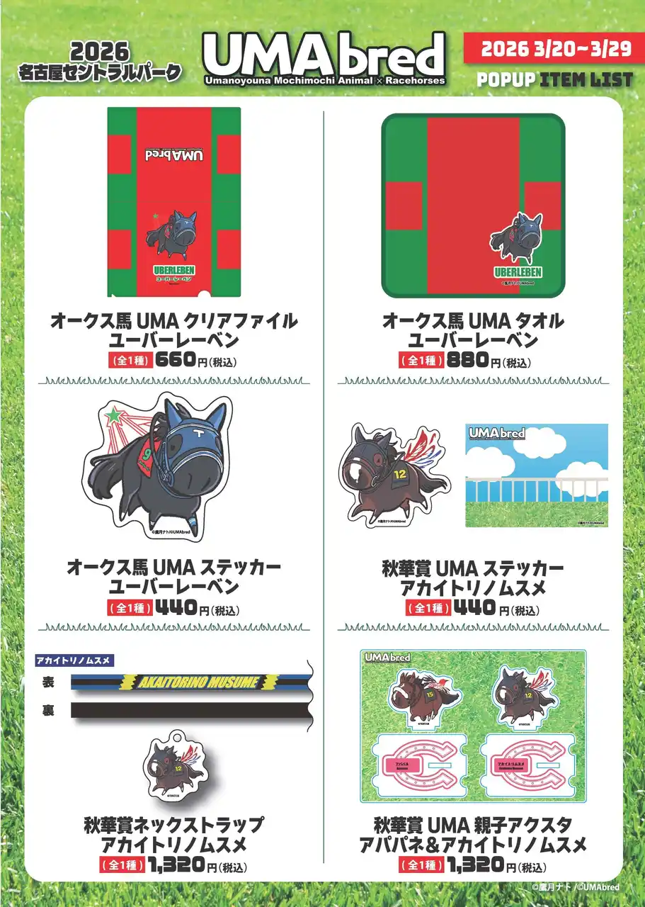| 実在の競走馬・引退馬を「UMA」(ウマのようなモチモチアニマル)として描きおろすグッズブランド「UMAbred」は3/20(金・祝)~3/29(日)の日程で名古屋セントラルパーク イベントスペースにてPOPUPを実施いたします。 | |||