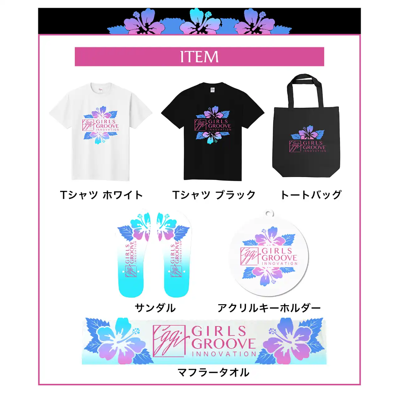 本コラボレーションでは、「GIRLS GROOVE INNOVATION」の公式グッズを、UP-Tの特設サイトにて販売いたします。イベントの世界観や魅力を詰め込んだ特別なデザインを施したアイテムをラインナップし、ファンの皆さまにお楽しみいただける内容となっています。 |