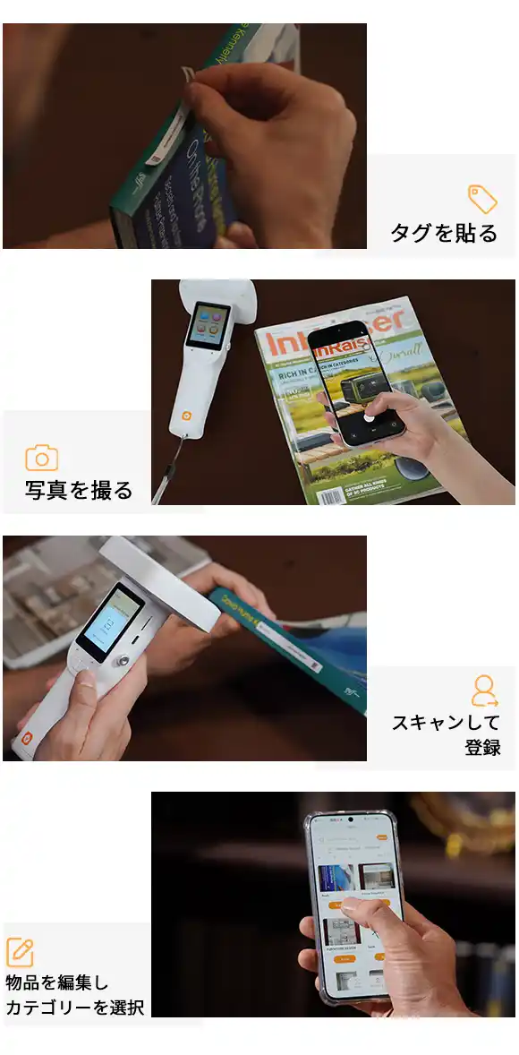 物品の写真撮影、名称登録、スマートな分類、在庫確認に対応し、管理しているすべての物品を一覧で把握できます。自宅のカバンや服、身分証明書から、オフィスの書類や工具まで。分類管理によって、探し物のために引き出しや箱を何度も開ける必要はありません。 |