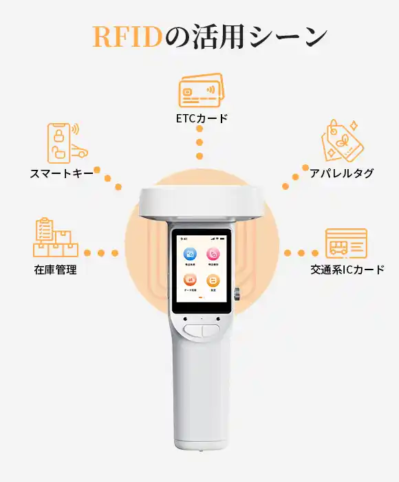 RFID技術は、非接触・長距離・高速読み取りが可能という特長を持ち、さまざまな分野で幅広く活用されています。 |