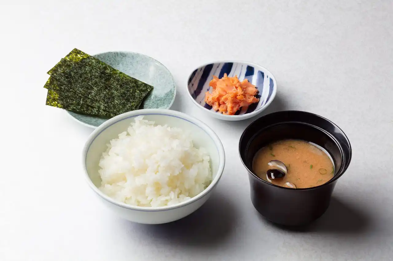 | 軽井沢プリンスホテル ウエスト「日本料理 からまつ」/ご飯、お味噌汁、海苔、鮭 | ||||
