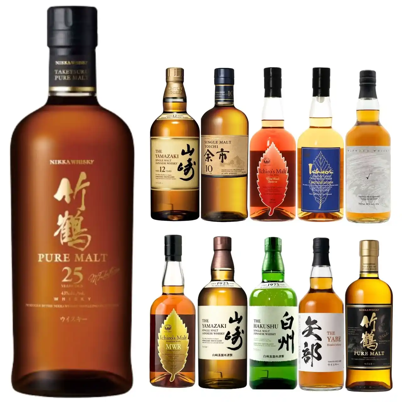 | 幻のウイスキーである「竹鶴25年」を筆頭に、「山崎12年」「余市10年」といった入手困難な長期熟成ボトルを封入しています。 | ||||||||||||||